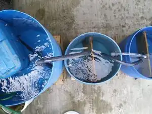 To discourage the formation of anaerobic conditions in our system we incorporated baffles into the barrels that would force the water column to mix. We got this idea from our research where we observed numerous systems incorporating just this idea. Although none of the systems we looked at for inspiration used barrels and baffles together, we were confident we could get it to work. Furthermore, our goal was to be as low impact as possible with our design and instituting a large number of electric pumps to mix and aerate the water column wasn't a preferred option. While trying to battle anaerobic conditions it was becoming increasingly important that we also give the system adequate retention time that would allow proper remediation of the greywater. It was a difficult series of requirements to balance. We utilized gravity feeds from the settling tank to each successive tank in order to reduce the need for electric pumps and make the project as low impact as possible. However, we did use one small aquarium pump (~15W) in the last barrel to re-circulated water back into the first treatment barrel to ensure the grey water would be adequately treated. The pump basically re-circulates a trickle of water from the second treatment barrel back into the first in order to maintain a long retention time while avoiding the formation of anaerobic conditions. We also have recommendations to experiment with using bicycle pumps or other forms of manual circulation to address both of these issues as well. Unfortunately, one our midlevel criteria involved minimizing maintenance time to less than 3 hours per week so our initial design will attempt to address this criterion through the use of the small aquarium pump.