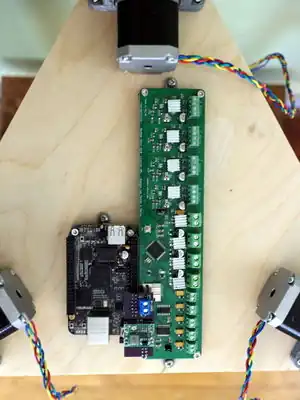 - Set the printer on a chair so that the motor end faces upwards. When looking down at the motors, W, U, and V are in clockwise rotation with W being the motor on the apex having the extruder drive and spool holder mounted to it.
