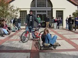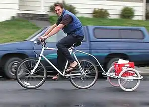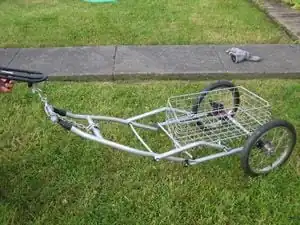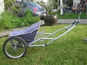 A bicycle trailer is a motorless wheeled frame with a hitch system for transporting cargo by bicycle. It can greatly increase a bike's cargo capacity, allowing point-to-point haulage of objects up to 3 cubic metres (3000 liters, or 4 cubic yards) in volume that weigh as much as 500 kg. However, very heavily loaded trailers may pose a danger to the cyclist and others, and the voluntary European standard EN 15918 therefore suggests a maximum load of 60 kg on trailers without brakes.
