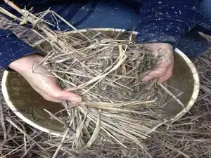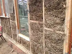 Wheat, rice, oat, barely or rye straw may be used in straw-slip mixtures. To achieve maximum thermal insulation it is best to use straw with thick stiff stalks such as rye. Thicker stalks help retain more air within the wall.[5] Straw used should attain no sign of decay or insects[6]
