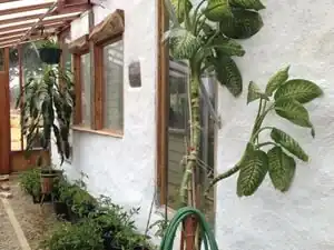 Maintenance of the greenhouse seems to be consistent and sufficient. Three walls of the greenhouse are made of redwood and have handled the weather well. The North wall is a free-standing clay wall with a cutaway to the beach-grass lined interior (truth window), which also appeared to be in excellent condition. The CCAT crew said that they annually apply an oil-based preservative to seal the interior wood and that nothing has to be done to preserve the earthen wall. The hydraulic pressure roof windows seem to be working as well, although the crew mentioned that in the summer the doors need to be opened as the heat becomes too much and can damage plants. One thing we noticed was the application of a silicone-based caulking to the edge of the roof where some of the vents attached. It is possible that the wood of south-facing structure slightly morphed over the years causing a few small leaks or that the low-pitched roof allowed for wind-driven rain to enter. The greenhouse has regular gardening attention, but they should remember to cutback grass/weeds along inside and outside of greenhouse to prevent mold and moisture coming into contact with the siding.