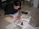 CCAT was able to give us some local clay that they were going to use for making cob. To use this clay for our paint, we had to first screen it. The first day of screening was very difficult. We tried screening the clay with large screens that CCAT owned. We screened the clay over a bucket and found the bucket to be too small. We tried screening the clay over a trash can cover which helped capture more of the screened clay. The screens were in bad shape so we tried restapling the ends but ran out of staples. The clay was also too wet. We decide to dry the clay and come back and screen it.