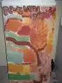 Orange was a difficult color because two pigments have to be mixed to make it. Also when it was added to the flour paint (with yellow undertones) the color was distorted. The utility room ended up being an orangy-brown color.