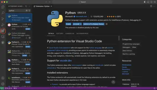 It is essential to have Python 3 installed on your computer. Furthermore, an IDE is required to implement the codes. Visual Studio Code is a recommended open-source option. To utilize Visual Studio Code, navigate to the 'Extensions' sidebar, install the Python extension by Microsoft, and then add the Prettier package.