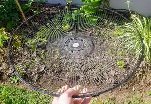 Old fan cases make excellent sieves for separating small and large bits of compost.