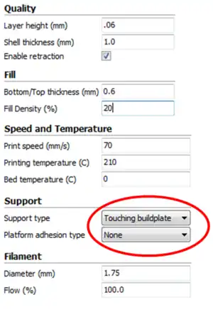 7. Choose speeds and layer thickness as ideal for your printer and desired strength