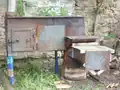The firebox was altered to give it a flat top to give extra cooking surfaces (and use more of the heat). Unfortunately the hopper for loading the biochar is positioned over the part of the firebox which emits the most heat and stops this heat being re-purposed easily.