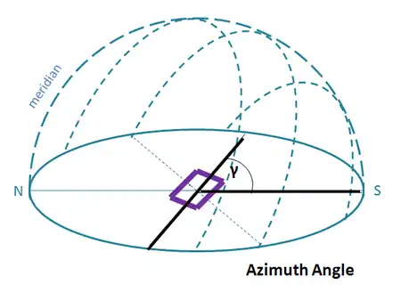 Surface Azimuth Angle (γ) The deviation angle from due South for the surface's normal vector projected onto the horizontal plane (-180o for Each, +180o for West)