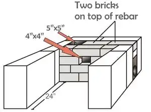 Rest 2, 6" lengths of rebar diagonal across the gap in the chimney stack.