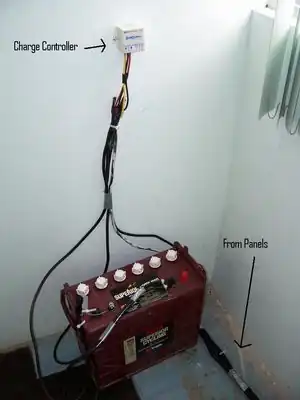 It is generally a good idea, in stand alone PV systems, to have an alternate method of electrical generation for critical loads. Often times, gas generators are used as a back up, in times of emergency. However, because Centro de Salud has access to the grid, a battery charger has been purchased for situations when the battery discharges to dangerously low levels. The battery charger is a rectifier that converts AC into DC allowing one to plug the battery into an AC socket in the wall for charging.