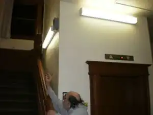 The Retrofit of the Eureka Central Residence complex consisted of the replacement of lights throughout the entire building. Five floors of hallway and stair lights were replaced, along with all the lights in the complex's recreation room. Over 150 lights were replaced total. The lights, ballasts and fixtures were all replaced from the complex's previously high energy fluorescent lights, to a low energy, low impact lighting system. The lighting in the residents' rooms however, were not replaced. The retrofit took place in late August of 2008, by a contractor hired by the RCEA and took a total of 2 days to complete.[2] The retrofit, after financial support from the RCEA, cost Eureka Central Residence roughly $2,045.[1]