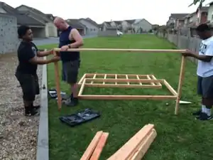 Build the frames for the sheets of plywood using wood screws and the cut pieces of 2x4's as well as the full length pieces. While building the frames measure each piece of lumber on the inside of the frame to be 16" apart, or less, from each other.