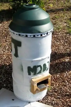 - Chimney: this can be made out of a metal box --such as a 5-gallon tin can or a 16 gallon oil drum like the one used in the WaterPod Rocket Stove-- or pipe standing vertically to support the cooking vessel like the one used in the Rocket Lorena Stove.