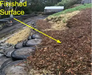 Note 1: Minimize plant/organic matter from mixing into the soil. Organic matter will decompose over time and this can cause the fill to shrink which could compromise the strength of the tire.