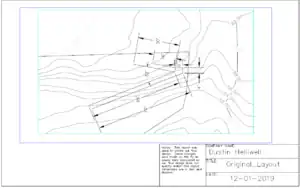 Final Trail: Overview of the final trail.- AutoCAD rendering of final design placement and dimensions (top view).