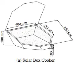 - ↑ The Solar Cooking Archive, "The Inclined Box-Type Solar Cooker – A New Design", hhttp://solarcooking.org/plans/inclined-box-cooker.htm, Accessed April 8, 2010