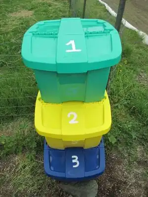 1. The first step is to select a storage area. The first thing to consider is the size of your storage area. This depends on how much organic matter you will be composting, the amount of worms you have and how often you would like to switch storage areas. Your bin size should depend on these three things. Large amounts of organic matter per week will need larger areas. Longer time between bin changes will also require larger areas. Storage areas that are planned for household use should have a lid to help reduce smells. Bins should have small holes to allow adequate air flow and holes on the bottom to allow for excess fluid drainage.