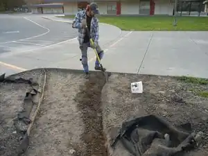 The Gardiens' goal is to renew the memorial garden at the entrance of Zane Middle School. This consists of removing weeds, replacing the existing mulch with shredded redwood bark, planting new native plants, and installing a new path through the garden. Ideally this will lower the need for maintenance and increase the aesthetic appeal of the garden.