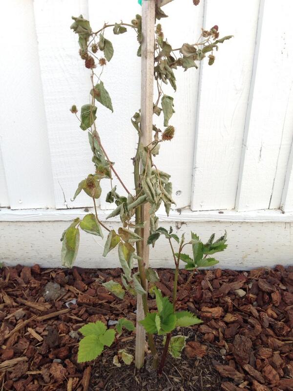I water my blackberry twice a week. There's a Fall Gold raspberry plant just 6 feet away and I water it with the same amount, except the raspberry is looking lush. – JoJo May 19 '14 at 06:03