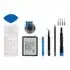 Squeeze the tweezer tips together and insert the point under one of the earpiece speaker clips.