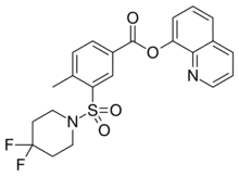 2F-QMPSB (SGT-13) is an arylsulfonamide-based synthetic cannabinoid that is a fluorinated derivative of QMPSB and has been sold as a designer drug.[1] Its identification was first reported by a forensic laboratory in Italy in January 2019,[2] and it was made illegal in Latvia shortly afterwards.[3][4] Fluorination of the tail group is a common strategy to increase potency at cannabinoid receptors which is seen in many related series of compounds.[5][6]