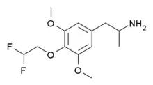 3C-DFE is a lesser-known psychedelic drug, which is a fluorinated derivative of 3C-E. It was first synthesised by Daniel Trachsel in 2002,[1][2] and has been reported as showing similar psychedelic activity to related compounds, with a dose range of around 20–40 mg and a duration of approximately 10 hours.[3]: 736 Despite its reported psychedelic activity, binding studies in vitro showed 3C-DFE to have a surprisingly weak binding affinity of 2695 nM at 5-HT2A with negligible affinity at 5-HT2C,[3]: 737 making it only slightly higher affinity than mescaline, despite its higher potency in vivo.