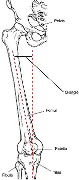 Additionally, female pelvises widen during puberty through the influence of sex hormones. This wider pelvis requires the femur to angle toward the knees. This angle towards the knee is referred to as the Q angle. The average Q angle for men is 14 degrees and the average for women is 17 degrees. Steps can be taken to reduce this Q angle, such as using orthotics.[21] The relatively wider female hip and widened Q angle may lead to an increased likelihood of ACL tears in women.[22]
