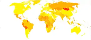 - ↑ GBD 2013 Mortality Causes of Death Collaborators (January 2015). "Global, regional, and national age-sex specific all-cause and cause-specific mortality for 240 causes of death, 1990-2013: a systematic analysis for the Global Burden of Disease Study 2013". Lancet. 385 (9963): 117–71. doi:10.1016/S0140-6736(14)61682-2. PMC 4340604. PMID 25530442.