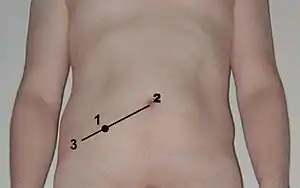 - Bartomier-Michelson's sign: Increased pain on palpation at the right iliac region as the person being examined lies on their left side compared to when they lie on their back.[32]