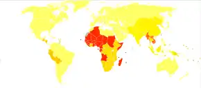 - ↑ Wang H, Naghavi M, Allen C, Barber RM, Bhutta ZA, Carter A, et al. (GBD 2015 Mortality and Causes of Death Collaborators) (October 2016). "Global, regional, and national life expectancy, all-cause mortality, and cause-specific mortality for 249 causes of death, 1980-2015: a systematic analysis for the Global Burden of Disease Study 2015". Lancet. 388 (10053): 1459–1544. doi:10.1016/s0140-6736(16)31012-1. PMC 5388903. PMID 27733281.