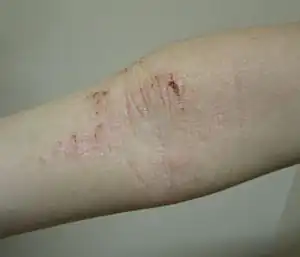 - ↑ Yarbrough KB, Neuhaus KJ, Simpson EL (March–April 2013). "The effects of treatment on itch in atopic dermatitis". Dermatologic Therapy. 26 (2): 110–9. doi:10.1111/dth.12032. PMC 4524501. PMID 23551368.