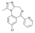Alprazolam Xanax, Helex, Xanor, Trankimazin, Onax, Alprox, Misar, Restyl, Solanax, Tafil, Neurol, Frontin, Kalma, Ksalol, Farmapram1981 0.25, 0.5, 1, 2 11–3[16]11-13 [10–20][16]anxiolytic, antidepressant[17]