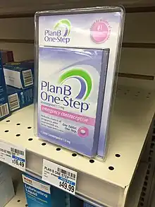 In 1997, the FDA approved a prescription emergency contraception pill (known as the morning-after pill), which became available over the counter in 2006.[52] In 2010, ulipristal acetate, an emergency contraceptive which is more effective after a longer delay was approved for use up to five days after unprotected sexual intercourse.[53] Fifty to sixty percent of abortion patients became pregnant in circumstances in which emergency contraceptives could have been used.[54] These emergency contraceptives, including Plan B and EllaOne, became another reproductive rights controversy.[55] Opponents of emergency contraception consider it a form of abortion, because it may interfere with the ability of a fertilized embryo to implant in the uterus; while proponents contend that it is not abortion, because the absence of implantation means that pregnancy never commenced.[56]
