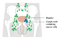 - ↑ Ku JH, Kang M, Kim HS, Jeong CW, Kwak C, Kim HH (June 2015). "Lymph node density as a prognostic variable in node-positive bladder cancer: a meta-analysis". BMC Cancer. 15: 447. doi:10.1186/s12885-015-1448-x. PMC 4450458. PMID 26027955.
