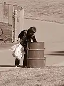 A canner participates in canning, the collection and redemption of deposit-marked beverage containers for recycling.[1] Canning is an activity undertaken by individuals or small teams, typically to earn an income.[2] Canning is only possible in nations, states, or municipalities which have enacted container-deposit legislation.[2][3]