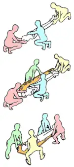 It is also possible to use a roll-and-lift method, or "spoon" lifting (relevage à la cuiller in French), with three people: