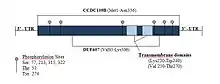 • Transmembrane Region: CCDC109B contains two transmembrane regions, located within DUF607, making it a multipass membrane protein. Since there are two transmembrane regions, both the N-terminus and C-terminus are located on one side of the membrane and have been localized to the cytosolic side of the cell membrane.[6]
