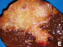 Risk factors for cholangiocarcinoma include primary sclerosing cholangitis (an inflammatory disease of the bile ducts), ulcerative colitis, cirrhosis, hepatitis C, hepatitis B, infection with certain liver flukes, and some congenital liver malformations.[1][3][8] However, most people have no identifiable risk factors.[3] The diagnosis is suspected based on a combination of blood tests, medical imaging, endoscopy, and sometimes surgical exploration.[4] The disease is confirmed by examination of cells from the tumor under a microscope.[4] It is typically an adenocarcinoma (a cancer that forms glands or secretes mucin).[3]