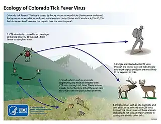 - ↑ "Virus | Colorado Tick Fever | CDC". www.cdc.gov. 16 April 2021. Archived from the original on 13 May 2023. Retrieved 21 August 2023.