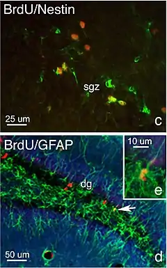 4. Cameron HA, McKay RD (July 2001). "Adult neurogenesis produces a large pool of new granule cells in the dentate gyrus". J. Comp. Neurol. 435 (4): 406–17. doi:10.1002/cne.1040. PMID 11406822. S2CID 15254735.