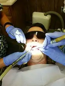 In the 1880s, tube toothpaste was created which replaced the original forms of powder or liquid toothpaste. New dental boards, such as the National Association of Dental Examiners, were created to establish standards and uniformity among dentists.[4] In 1887 the first dental laboratory was established; dental laboratories are used to create dentures and crowns that are specific to each patient.[5] In 1895 the dental X-ray was discovered by a German physicist, Wilhelm Röntgen.[6]