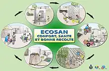 Ecological sanitation, commonly abbreviated as ecosan (also spelled eco-san or EcoSan), is an approach to sanitation provision which aims to safely reuse excreta in agriculture.[1] It is an approach, rather than a technology or a device which is characterized by a desire to "close the loop", mainly for the nutrients and organic matter between sanitation and agriculture in a safe manner. One of the aims is to minimise the use of non-renewable resources. When properly designed and operated, ecosan systems provide a hygienically safe system to convert human excreta into nutrients to be returned to the soil, and water to be returned to the land. Ecosan is also called resource-oriented sanitation.