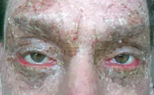 Ectropion is a medical condition in which the lower eyelid turns outwards. It is one of the notable aspects of newborns exhibiting congenital Harlequin-type ichthyosis, but ectropion can occur due to any weakening of tissue of the lower eyelid. The condition can be repaired surgically. Ectropion is also found in dogs as a genetic disorder in certain breeds.