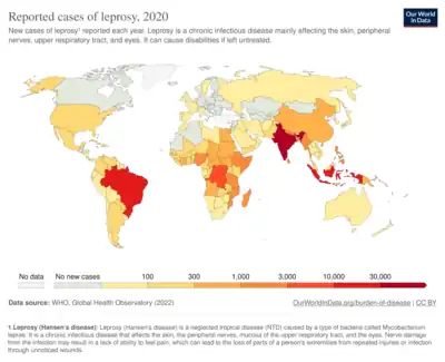 - ↑ "New case detection trends in leprosy" (PDF). WHO. Archived from the original (PDF) on 2020-09-15.
