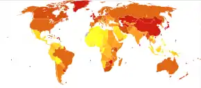 - ↑ Lozano, R; Naghavi, M; Foreman, K; Lim, S; Shibuya, K; Aboyans, V; Abraham, J; Adair, T; Aggarwal, R (Dec 15, 2012). "Global and regional mortality from 235 causes of death for 20 age groups in 1990 and 2010: a systematic analysis for the Global Burden of Disease Study 2010". Lancet. 380 (9859): 2095–128. doi:10.1016/S0140-6736(12)61728-0. hdl:10536/DRO/DU:30050819. PMID 23245604.