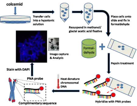 Q-FISH combines FISH with PNAs and computer software to quantify fluorescence intensity. This technique is used routinely in telomere length research.[34]