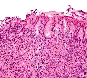 | Micrograph showing gastritis. H&E stain. | |
