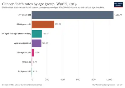 Frail elderly people may choose to decline some kinds of medical care, because the risk-benefit ratio is different. For example, frail elderly women routinely stop screening mammograms, because breast cancer is typically a slowly growing disease that would cause them no pain, impairment, or loss of life before they would die of other causes. Frail people are also at significant risk of post-surgical complications and the need for extended care, and an accurate prediction—based on validated measures, rather than how old the patient's face looks—can help older patients make fully informed choices about their options. Assessment of older patients before elective surgeries can accurately predict the patients' recovery trajectories.[9] One frailty scale uses five items: unintentional weight loss, muscle weakness, exhaustion, low physical activity, and slowed walking speed. A healthy person scores 0; a very frail person scores 5. Compared to non-frail elderly people, people with intermediate frailty scores (2 or 3) are twice as likely to have post-surgical complications, spend 50% more time in the hospital, and are three times as likely to be discharged to a skilled nursing facility instead of to their own homes.[9] Frail elderly patients (score of 4 or 5) who were living at home before the surgery have even worse outcomes, with the risk of being discharged to a nursing home rising to twenty times the rate for non-frail elderly people.