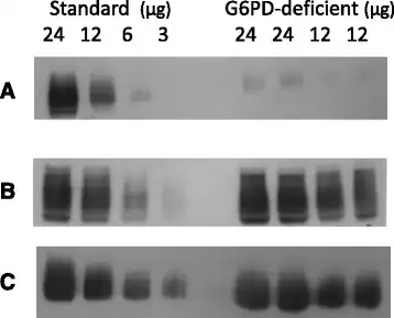 - A "direct antiglobulin test" (Coombs' test) – this should be negative, as hemolysis in G6PD is not immune-mediated;
