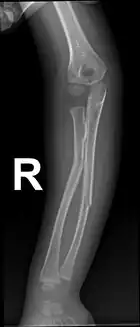 1. Firmin F, Crouch R (July 2009). "Splinting versus casting of "torus" fractures to the distal radius in the paediatric patient presenting at the emergency department (ED): a literature review". Int Emerg Nurs. 17 (3): 173–8. doi:10.1016/j.ienj.2009.03.006. PMID 19577205.